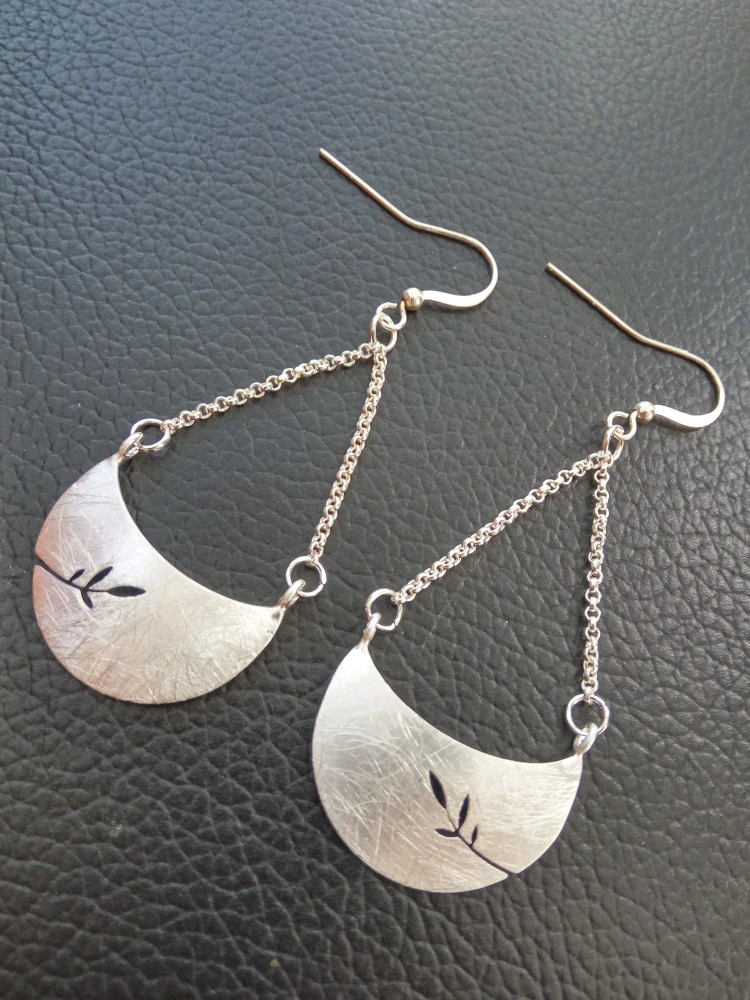Nádherné prořezávané visací náušnice s motivem větvičky. Postříbřená mosaz, matná úprava, drátkováno. Autorský šperk.