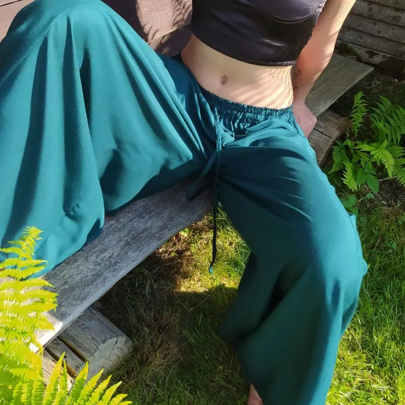 Vzdušné palazzo kalhoty z chladivé viskózy, barva petrolejováSkladem499 Kč/ ks