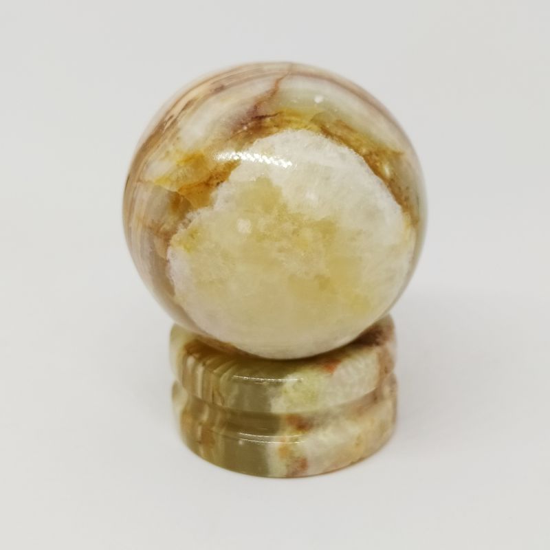 Koule z broušeného Onyxu s překrásnou kresbou + onyxový podstavec.