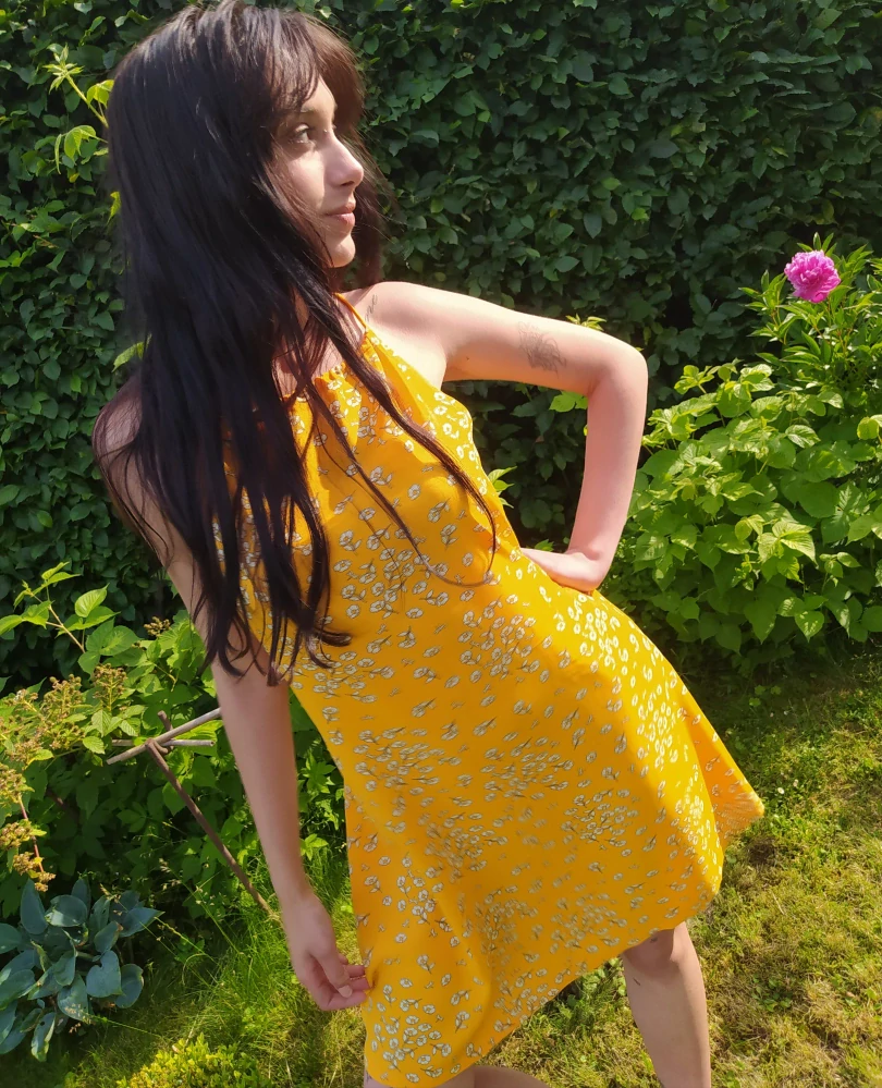 Letní šaty Tulipánshop splývavého áčkového střihu. Délku ramínek lze stejně jako výšku dekoltu a obvod prsou vazačkou na zádech přizpůsobit. Tenkým páskem lze vypasovat. Ojediněle příjemné na dotek, poskytují v horkých letních dnech nebývalý komfort a pocit volnosti.