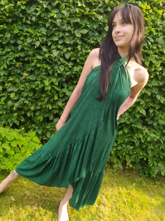 Vzdušné, ležérní, zavinovací šaty/sukně Tulipánshop. Dva v jednom. Rozšiřující se kanýr po celé délce vytváří krásný detail. Dvě poutka s krytím a úzkým páskem. Šířka bez pásku 92 cm. Délka cca 98 cm. Univerzální velikost pokrývá bez problémů S až L. Ideální šaty k moři!