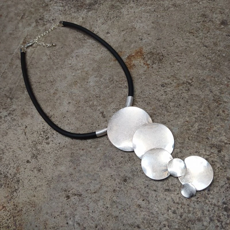 Elegantní náhrdelník, pryž, bižuterní kov. Délka cca 40cm + řetízek 8 cm, délka přívěšku cca 10,5 cm. Pohodlné zapínání s prodlužovacím řetízkem. Ke slavnostní příležitosti i běžnému nošení.