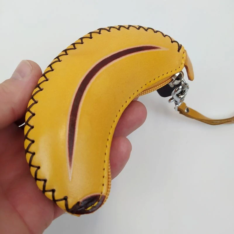 Zvířátková peněženka žluté barvy ve tvaru banánu. Zapínání na zip.