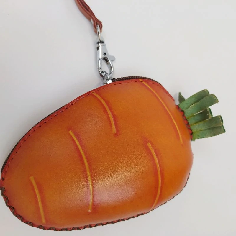 Zvířátková peněženka ve tvaru mrkve s natí. Zapínání na zip.