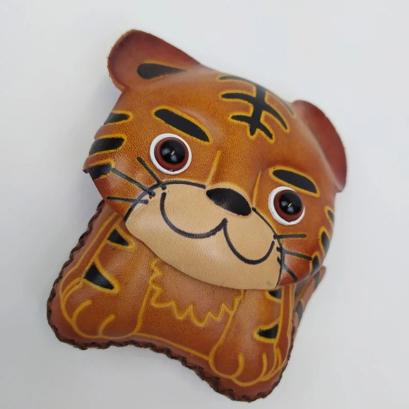 Zvířátková peněženka hnědé barvy ve tvaru tygříka. Zapínání na zip.