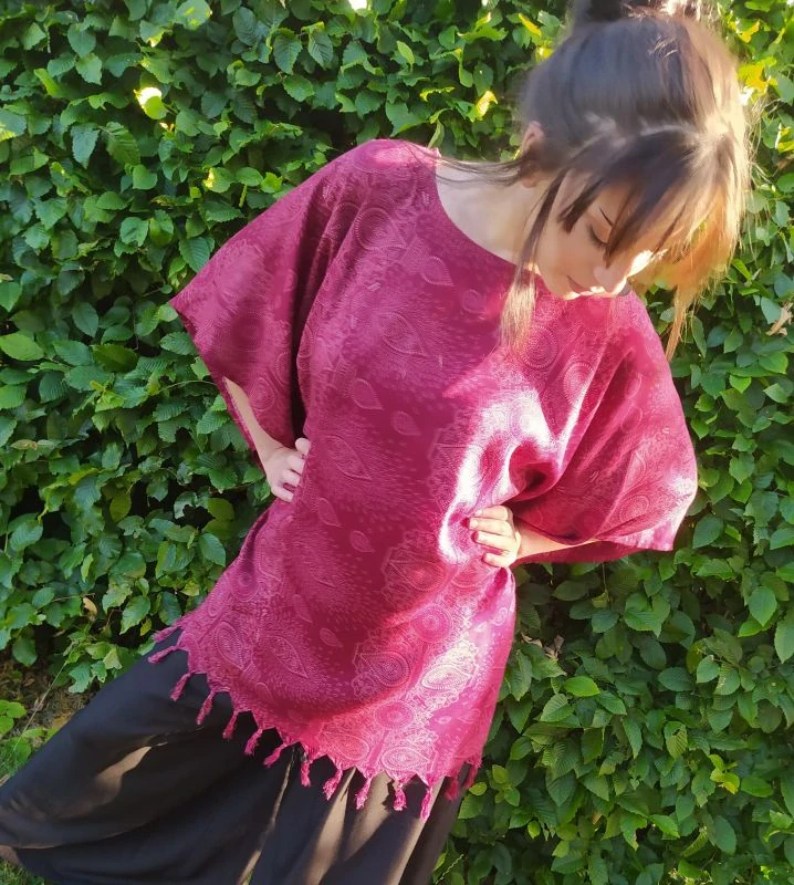 Lehounké pončo - halenka s nádherným vzorem oceníte především v horkých letních dnech. Univerzální velikost, 100% viskóza (někdy označovaná jako průmyslové hedvábí, nebo též rayon), báječný poměr cena - komfort - kvalita. Tenhle kousek osvěží každý letní šatník. Jako vzdušné šatečky na plavky, volná halenka k riflím i pohodlné domácí oblečení. Vhodné i jako halenka nadměrné velikosti.