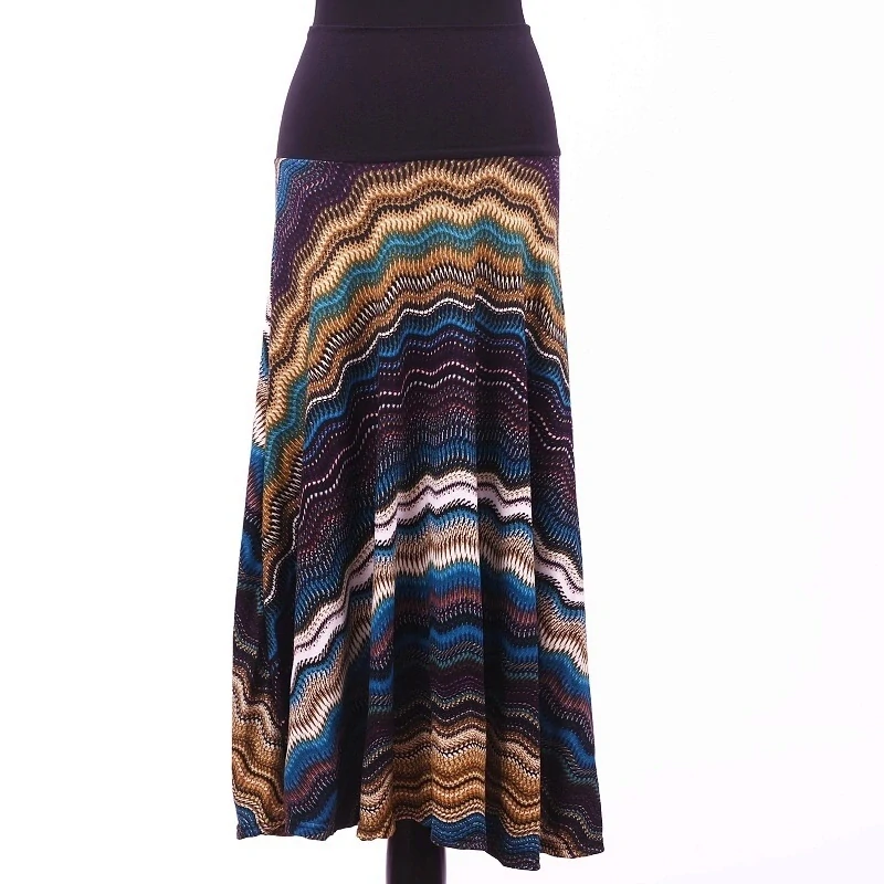 Dlouhá dámská kolová sukně z teplého materiálu s elastickým pasem.