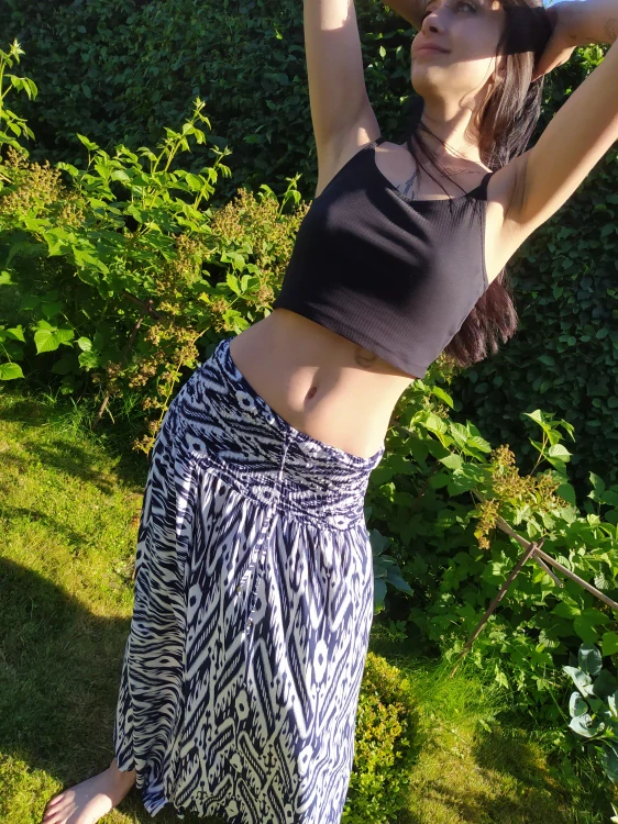 Pohodlná a praktická letní sukně/šaty Tulipánshop. Dva v jednom. 17 cm široká žabka s tunýlkem a šňůrkou ukončenou kovovými uzlíky. Elasticita žabky v extrémech 32 - 55 cm ( měřen přední díl). Délka 98 cm. Univerzální velikost pokrývající M a L.