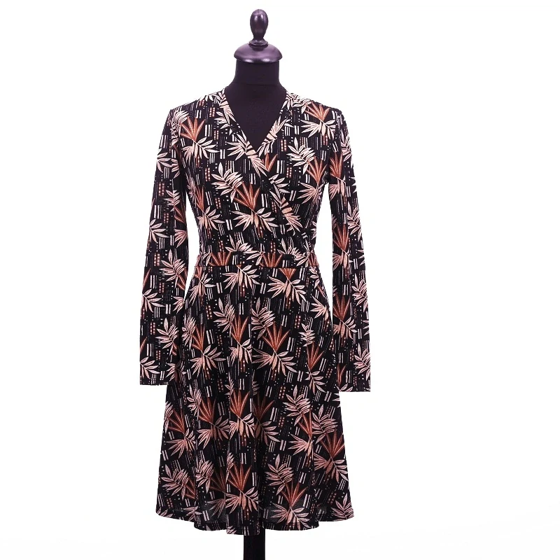 Teplé dámské šaty značky Tulipánshop. Elegantní model s překřížením, dělivým mezipáskem a atraktivním vzorem. Materiál polyester 95% + elastan 5%.  S/M  prsa 39 cm, boky 42 cm, délka 94 cm M/L  prsa 44 cm, boky 46 cm, délka 94 cm L/XL  prsa 47 cm, boky 49 cm, délka 94 cm celý popis